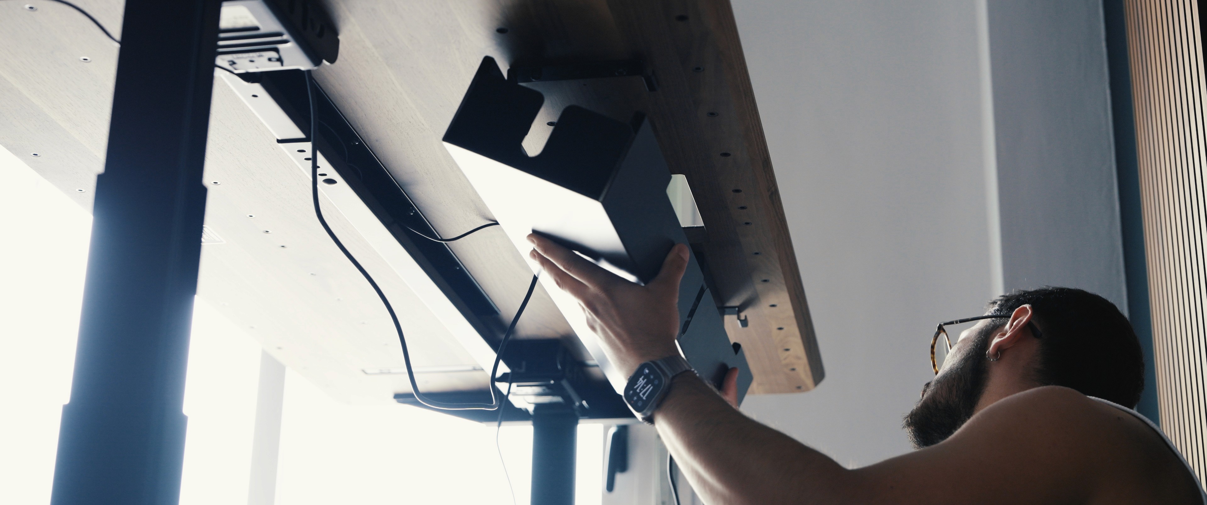 One of the most innovative aspects of the BALOLO Desk Cockpit is the mounting grid underneath the tabletop. This grid is fully compatible with the Setup Cockpit ecosystem, allowing you to re-use existing Balolo accessories like trays, holders, and mounts—no tools or extra modifications needed.